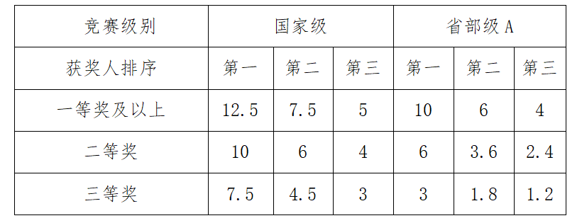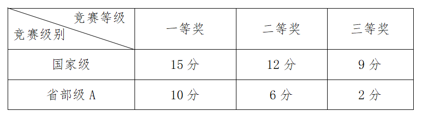 (3)省(部)级A类竞赛加分总和超过7.5分按7.5分计入总分。省部级B类竞赛及以下不加分。